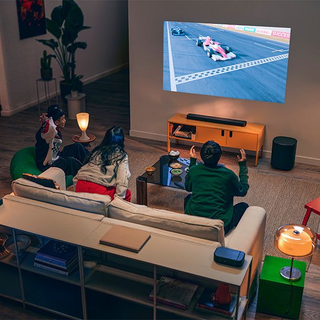 Desfrute de um amplo campo sonoro, semelhante ao de um cinema, independentemente de onde você esteja sentado. O MultiBeam 3.0 preenche sua sala com um som realista e envolvente que dá vida a filmes, músicas e jogos.